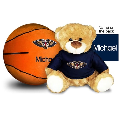 New Orleans Pelicans 10'' Personalized Plush Bear & Basketball Set - Navy