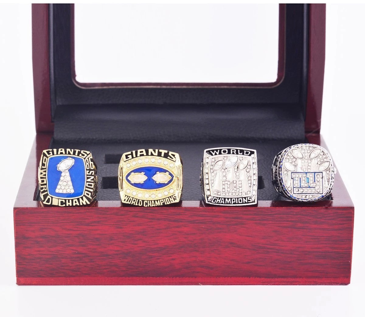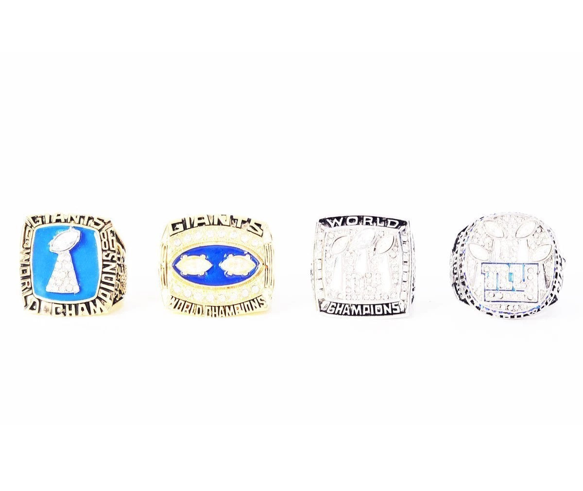 Team: New York GiantsYear: 1986Metal Type: Zinc AlloyMaterial: Cubic ZirconiaSize: 8 to 14