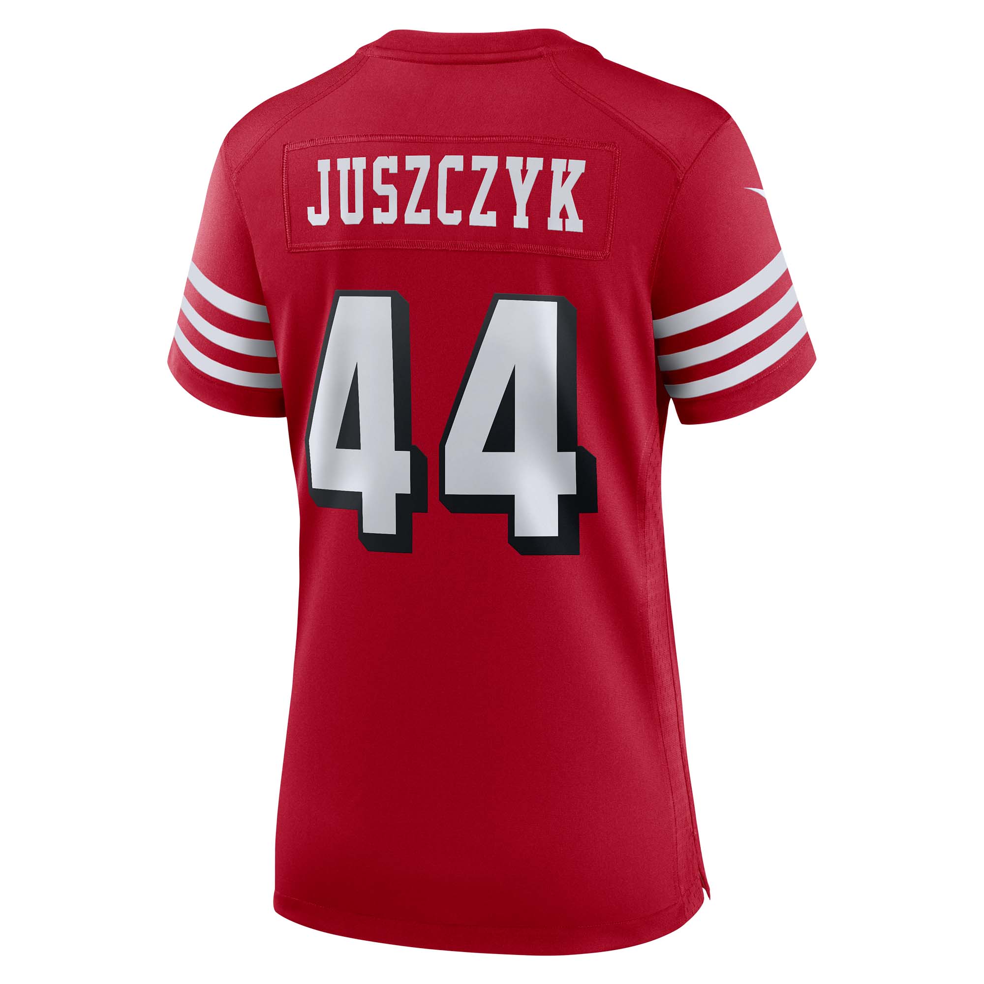 Rep the on-field look of your favorite San Francisco 49ers player with this Kyle Juszczyk Game jersey from Nike. Its heat-sealed name, numbers and team details provide a kickoff-ready aesthetic while also offering a comfortable, lightweight feel. Designed for everyday movement, this jersey has a versatile tailored fit and features mesh side panels for added ventilation as you celebrate every big play by the San Francisco 49ers this season.