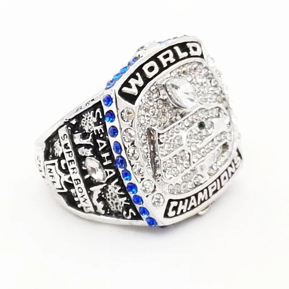 Team: Seattle SeahawksYear: 2013Metal Type: Zinc AlloyMaterial: Cubic ZirconiaSize: 8 to 14